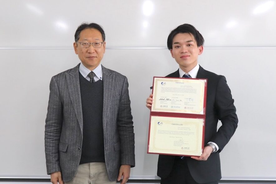 この日には、DDおよびNon-DDの学生6名が参加しました。学生がCAプログラムについての感想を一人ずつ丁寧に述べ、その後はプログラム責任者の宮崎教授より修了証が一人ひとりに授与されました。