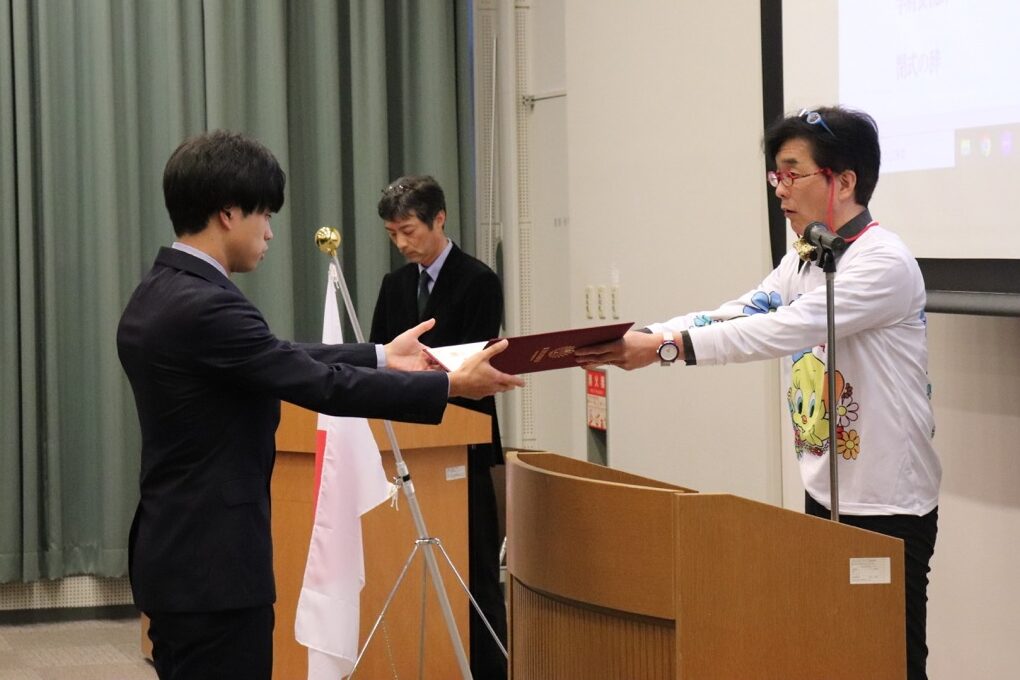 式の後半では、宮崎教授よりプログラム全体を振り返る貴重なお話があり、皆様の熱心な参加により式は成功裏に終了いたしました。