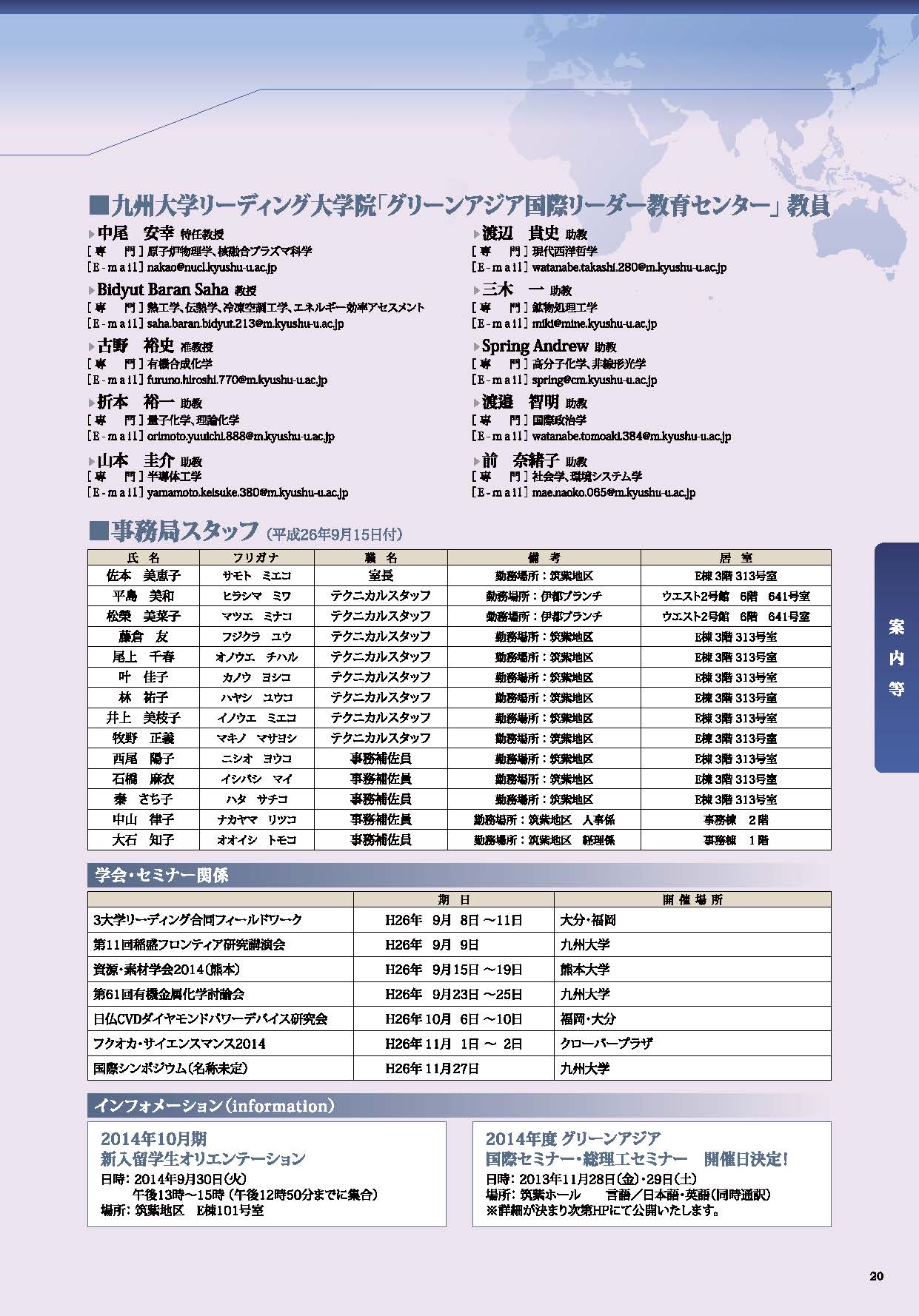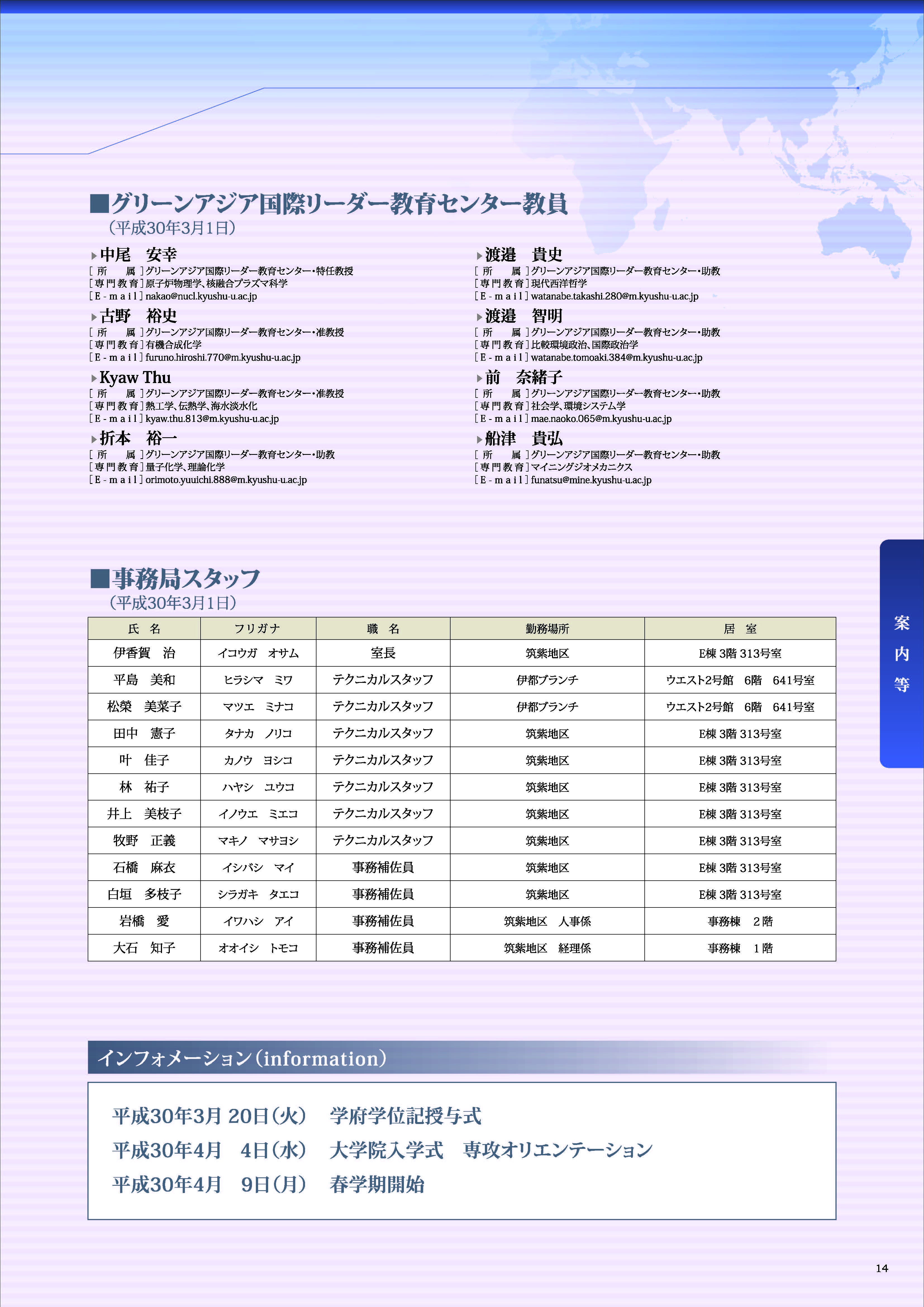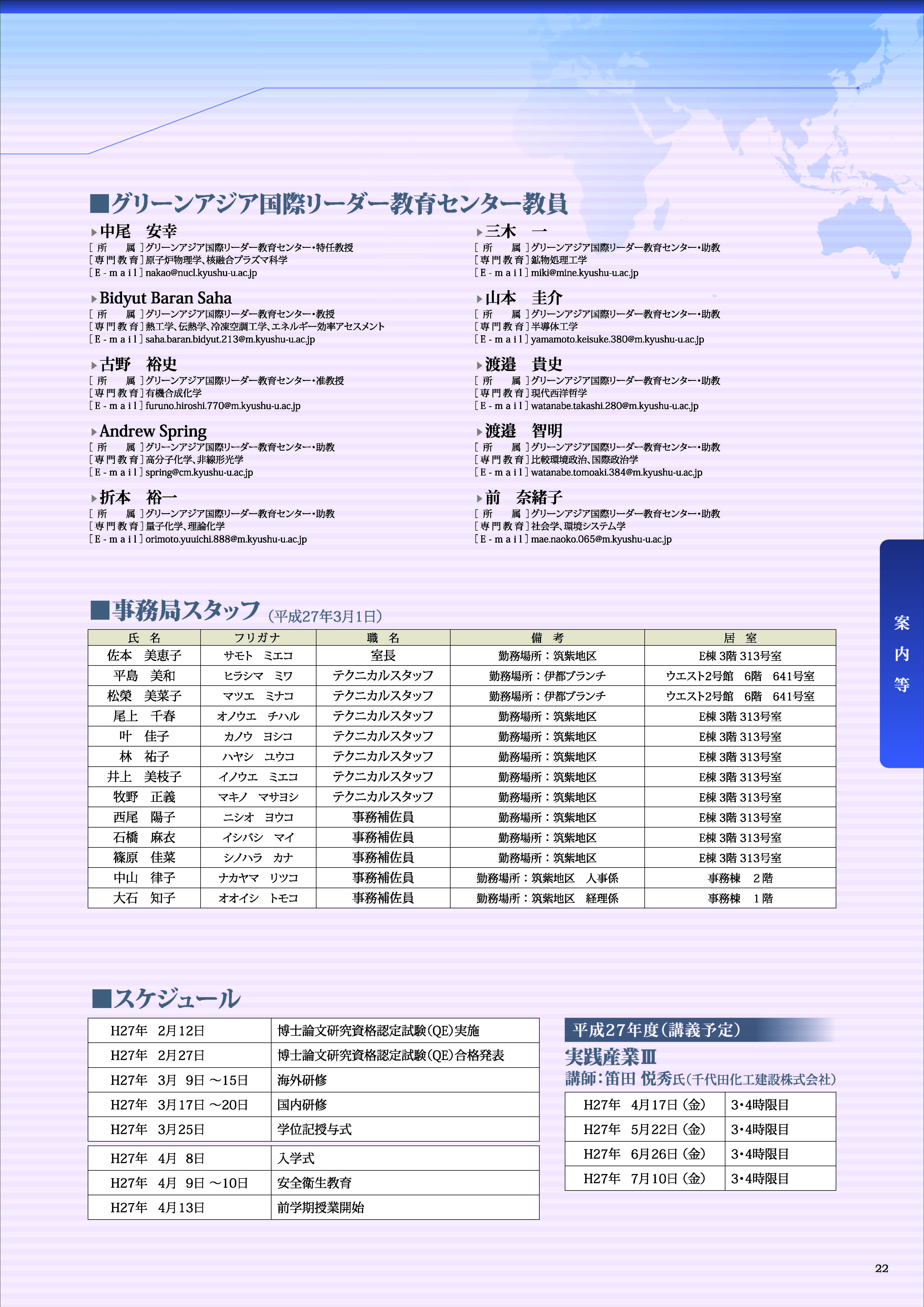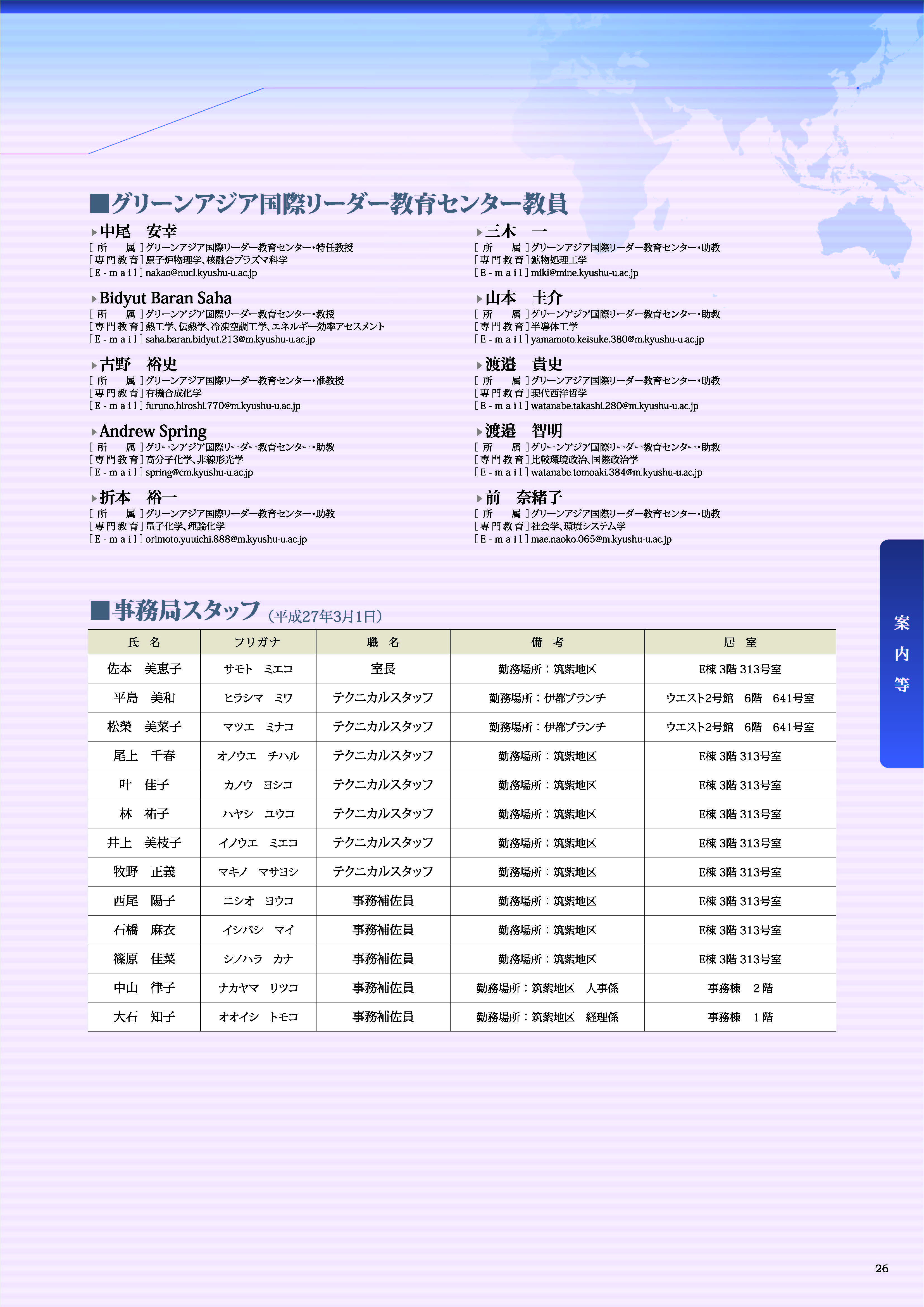 ・九州大学リーディング大学院「グリーンアジア国際リーダー教育センター」教員