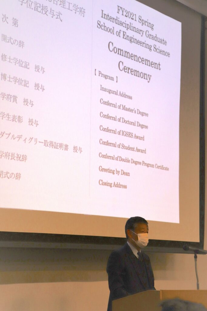 今年度の総理工での学位記授与式も、去年と同じく縮小されたものとなりましたが予定通り3/23に筑紫ホールにて挙行されました。