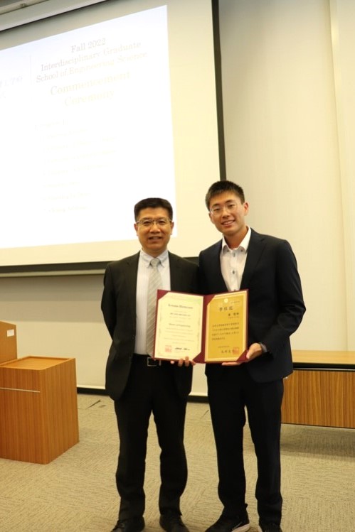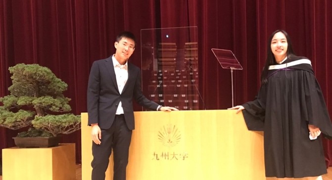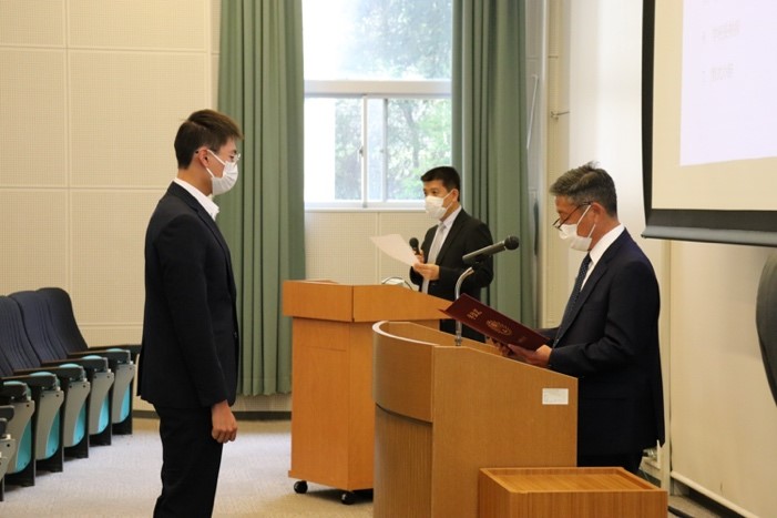 9月22日、秋季の授与式が行われ、九大での留学期間を終えた台湾科技大学のDD生代表2名が