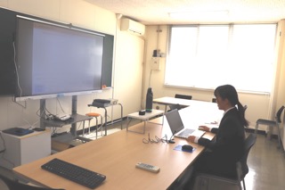 Web会議システムにより釜山大と九大を繋ぎ、今月はKUから5名が両大学の担当教員を前に修士論文の発表をしました。