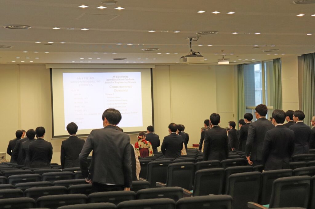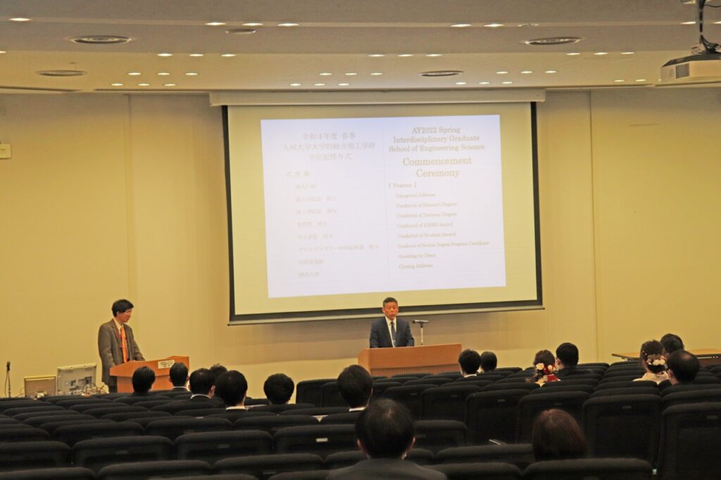 2022年度総合理工学府の学位授与式が、3月20日に授与式が筑紫ホールにて挙行されました。